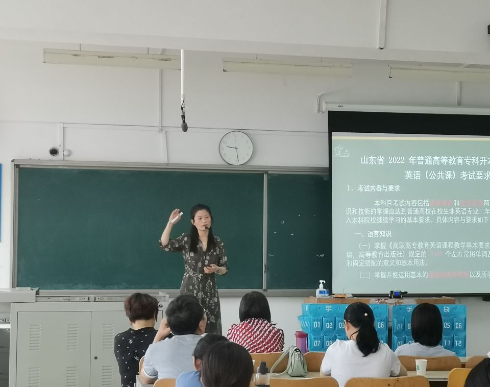 蒋继国介绍了我校专升本工作的基础与成绩,希望同学们明确学习目标,实习期间,合理规划时间,提升专业技能的同时,制定合理的专升本学习计划,保持良好学习状态,拼搏进取,努力向着梦想前进。接着,大学英语、计算机、大学语文、高等数学学科负责人杨馨、高谨、贾先奎和孔胶胶四位教师基于2020-2022年山东省专升本考试要求,剖析了考试题型及难度,就如何备考分享了学习方法,并帮助学生制定了切实可行的学习规划。最后,座谈会进入提问答疑环节。在场同学纷纷提出问题,老师们耐心解答,现场气氛热烈。