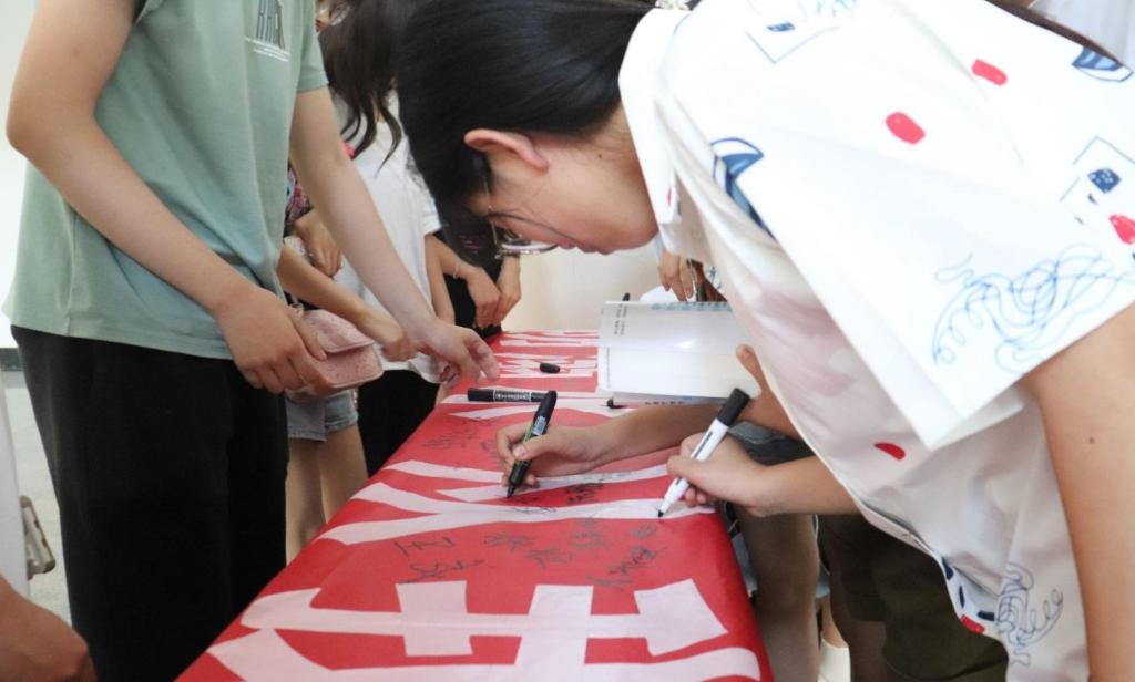 杨慧芳老师分别通过对海水、河水、水库、浅溪、水潭等风险性场所的描述,为现场师生讲述了溺水后遇到的危险情况,并分析相关实际案例,筑牢“珍爱生命·预防溺水”的意识。同时,向全体师生提出六点安全防溺水倡议:一、不私自下水游泳;二、不擅自与他人结伴游泳;三、不在无专业人员带领的情况下游泳;四、不到无安全设施、无救援人员的水域游泳;五、不到不熟悉的水域游泳;六、不熟悉水性的学生不擅自下水施救。在杨老师的指引下,关工委的公益志愿者们还现场展示了多种溺水自救和智慧施救的动作、方法,遇到危险时,这些规范动作将大大提升溺水者自救或施救的希望,现场的师生对志愿者们的精彩展示发出阵阵热烈的掌声。讲座结束后,现场还举行了防溺水师生大签名活动。