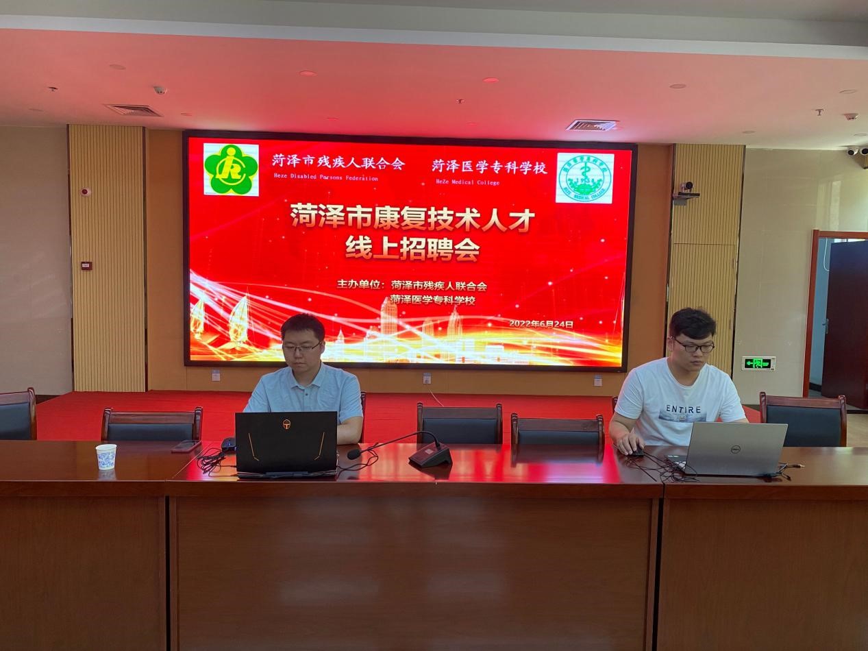 本次招聘会采取线下线上相结合的方式同步进行,招聘会由医学技术系康复教研室主任邵康同志主持,市委副书记李春英、菏泽医专党委副书记、校长顾润国等领导现场观看、指导招聘活动。菏泽市培智残疾儿童康复中心、巨野民生康复医院、菏泽惠仁中医医院等5家技联体合作单位的代表,菏泽医专康复治疗技术等专业的毕业生代表现场参加了招聘活动。线上招聘会弥补了疫情因素给求职招聘工作带来的消极影响,各专业毕业生和招聘单位代表共计500余人参加了此次招聘会,共有18家定点康复机构提供了349个就业岗位。