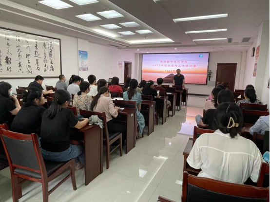 蒋继国针对2022年山东省招生政策、生源数量、生源类型变化等方面向老师们做了进一步解读。他要求招生咨询老师应立足考生需求,结合考生实际情况,对考生及家长提供针对性、准确性的志愿填报指导。老师们不仅要全面了解我校专业建设和人才培养情况,也要熟悉各省的招生政策和专业情况,用考生和家长最能理解、最简单直白的语言为其提供热情耐心咨询服务。