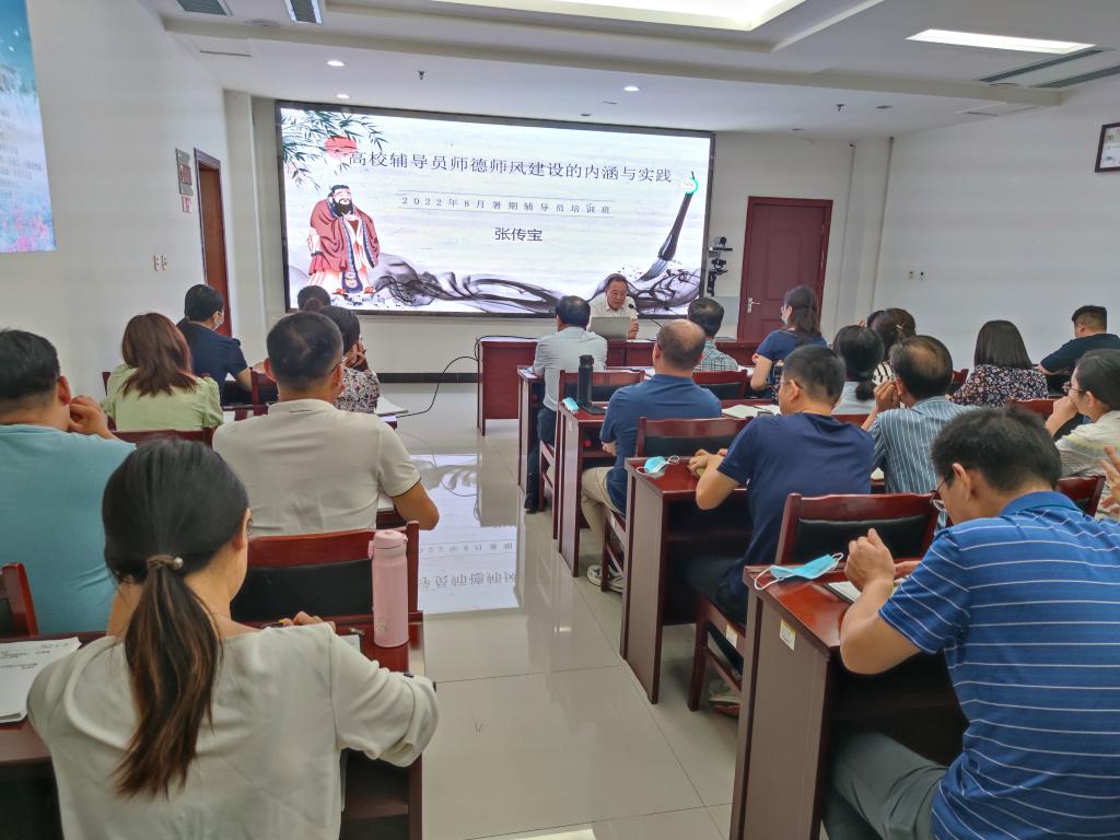 张传宝作《高校辅导员师德师风建设的内涵与实践》专题报告,全面解读高校辅导员师德师风建设的目的、内容、基本要求、自我实现。他强调,辅导员要随时以教师职业道德规范来要求自己,志存高远,洁身自好。只有不断提高辅导员队伍的师德师风和整体素质,才能为学校发展提供强有力的师资保障,才能培养和造就合格的高素质高技能型专门人才。