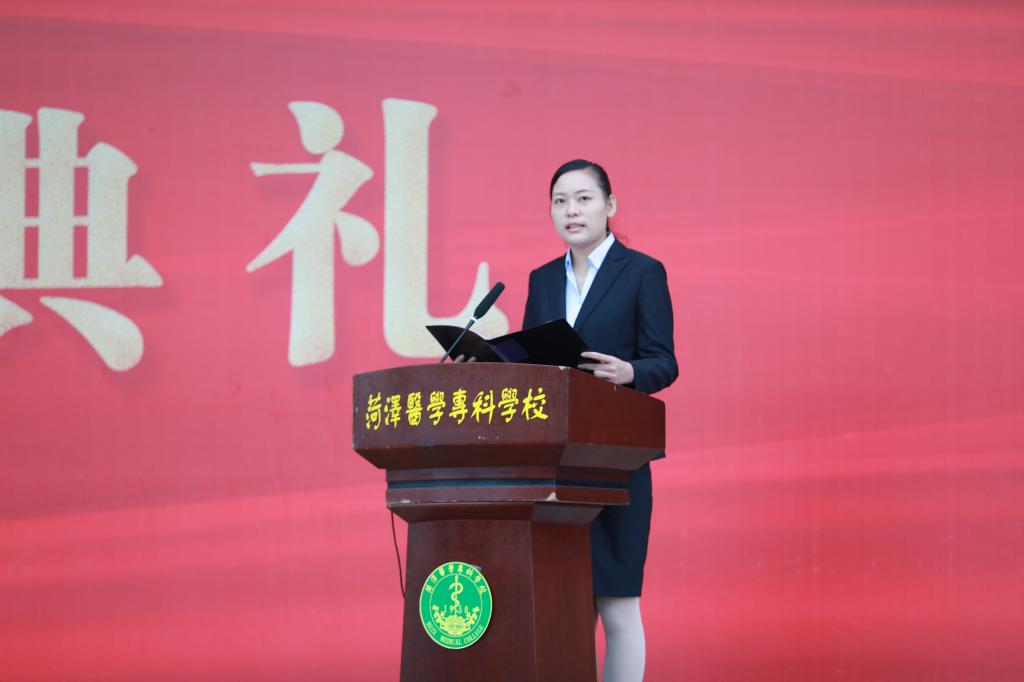 校长顾润国代表全校师生员工向加入菏泽医专大家庭的2022级全体新生表示热烈的欢迎。他介绍了我校的建校历史、办学成就和发展前景,并对新生提出了殷切希望和建议,一是要学会独立,客观地审视自己的优势特长和缺点不足,锚定目标努力前行,不断提升自我;二是要勇于拼搏,在青春韶华里奏响拼搏奋斗的最强乐章;三是要敢于担当,牢固树立为国为民的远大理想,自觉担当历史使命,不负时代,不负人民。