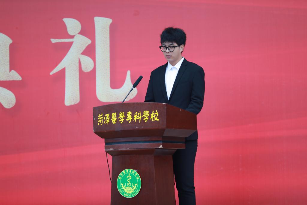 2021级临床医学系王敬德同学代表老生发言。他表示,作为菏医学子,就要坚定目标,不忘初心,严谨求学,在未来的医学生涯中时刻保持对医学的热爱,不断迎接挑战、追求卓越、超越自我。