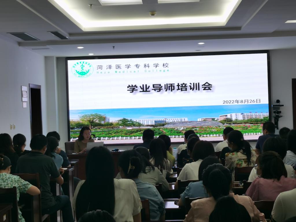 为贯彻落实国家和省职业教育提质培优行动计划,全面落实我校学业导师制,进一步推进学分制改革,根据《菏泽医学专科学校学业导师实施办法》(菏医政字〔2020〕53号),我校择优选聘2022级新生各专业学业导师40名。8月26日下午,学校教务处在图书馆六楼第三会议室举办学业导师业务培训,全校学业导师共89人参加了培训。