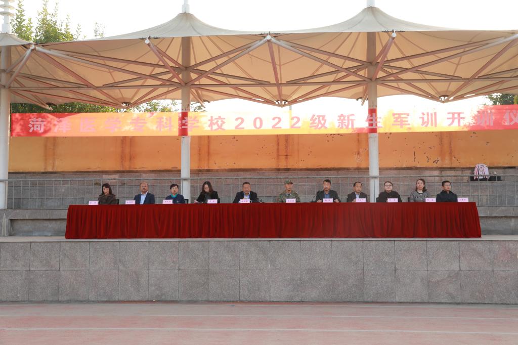 10月24日上午8点,在嘹亮的国歌声中,我校2022级新生军训开训仪式在操场隆重举行,菏泽军分区战备建设处处长范治国上校、副校长张传宝、学生工作处处长孙战、团委书记于淼和各系书记、全体教官、2022级全体辅导员及全体参训学生参加了本次开训仪式。仪式由团委书记于淼主持。