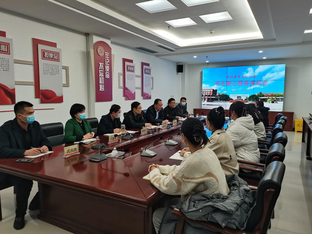 疫情当前,为切实做好学生暖心服务,畅通学生诉求通道,了解同学们在学习、生活中的所需所想,有针对性的做好学生教育管理工作。11月27日下午,校长顾润国在第一会议室主持召开学生暖心服务座谈会,副校长张传宝、蒋继国、齐云飞,教务处、学生处、总务处等部门负责同志及30余名学生代表参加了座谈,会议由张传宝主持。