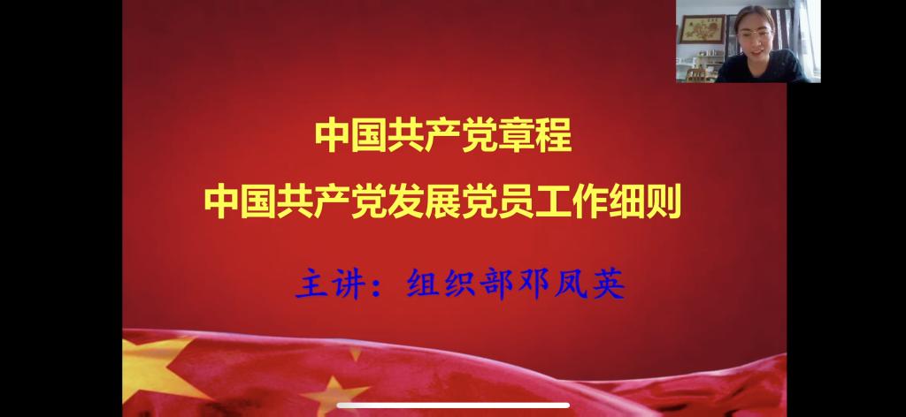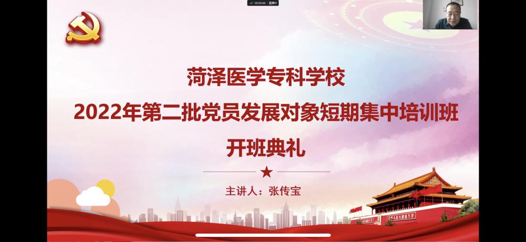 本次培训通过钉钉直播平台线上举行,91名党员发展对象参加,其中教工4人,学生87人。培训邀请我校党委委员、副校长张传宝同志作开班典礼动员讲话。他指出本次培训机会难得、意义重大,学员要充分利用这次机会,全面深入地理解党的性质、领会党的纲领、学习党的纪律,进一步端正入党动机,通过学习培训,坚定理想信念,勇于责任担当,思想认识进一步深化,党性观念进一步增强,能力素质进一步提高,努力做到真学、真懂、真信、真用,切实完成本次培训任务。培训采取集中培训与学员自主学习相结合的方式,集中培训阶段,安排党的二十大报告解读、党章、《关于新形势下党内政治生活的若干准则》、《中国共产党发展党员工作细则》、《中国共产党支部工作条例(试行)》等专题授课;自主学习阶段,精选党的二十大开幕式、《二十大精神二十人讲》、《让党旗在新征程上高高飘扬》、《焦裕禄生命的最后53天》、《“三会一课”教学片》等多部弘扬主旋律、提倡正能量的教学视频,为学员提供了丰富的课程资源。