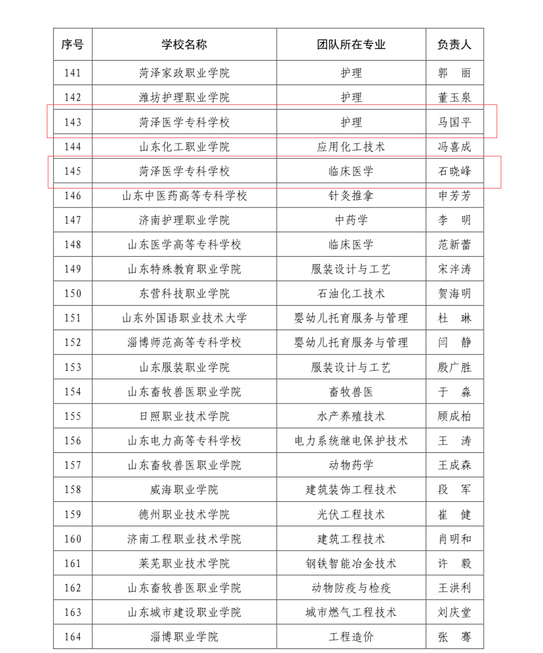 日前,山东省教育厅公示了2022年度山东省职业教育教学创新团队入选名单,我校护理专业和临床医学专业教学团队喜获认定,实现了我校在省级教学创新团队项目上的突破。
