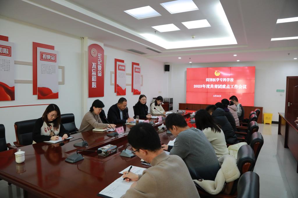 2月21日,我校2023年度共青团重点工作会议在图书楼第一会议室召开。校党委委员、副校长张传宝出席会议并讲话,校团委书记于淼,团委全体成员,各系部团总支书记、副书记及委员参加会议。会议由校团委吴丹主持。