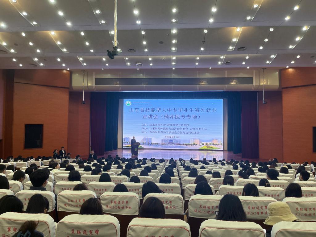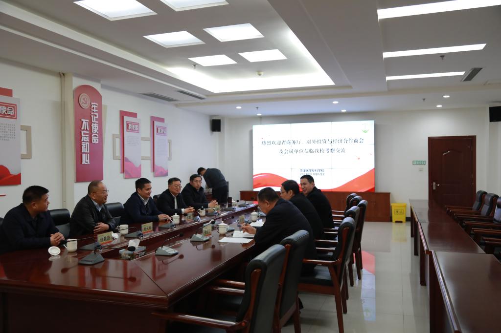 魅力校园春意浓,美丽菏医迎客来。3月2日下午,省商务厅对外投资与经济合作处、省对外投资与经济合作商会及12家会员单位一行32人莅临我校考察交流,菏泽市商务局二级调研员刘天坤、四级调研员黄涛、外派劳务管理中心主任张景岩陪同考察。学校党委副书记、校长顾润国,党委委员、副校长张传宝,校企合作与培训就业处处长王学贺及相关工作人员参加座谈会,会议由张传宝主持。