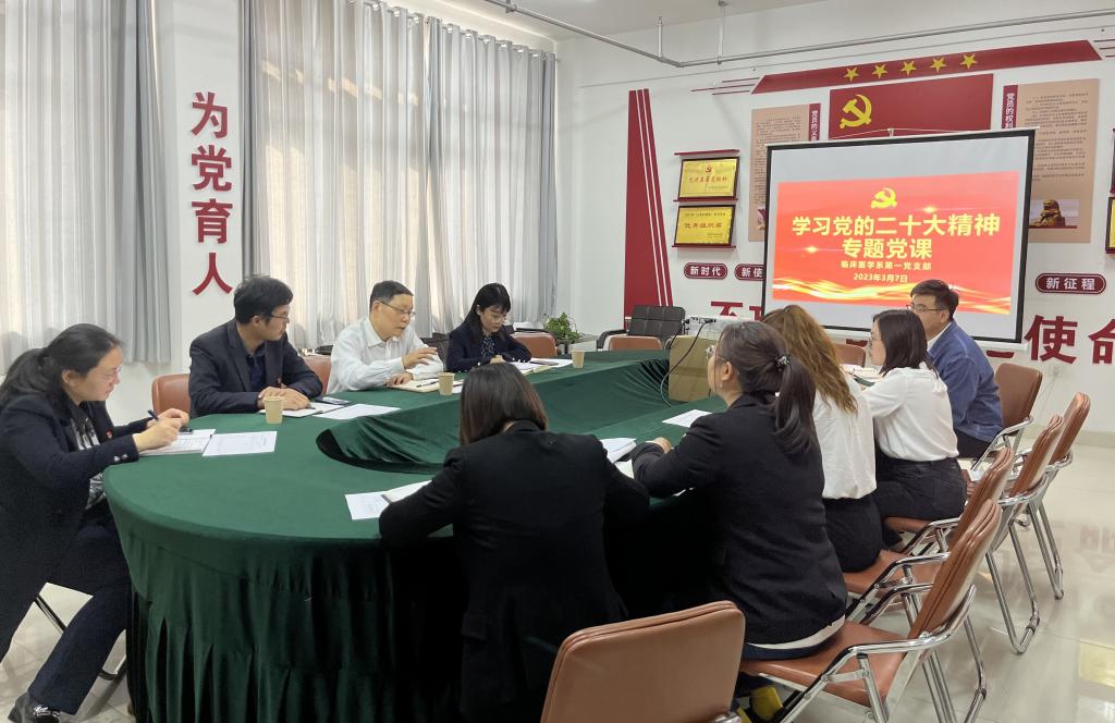3月7日下午,我校校长顾润国在3号实验楼403党员活动室为临床医学系第一党支部全体教工党员做党的二十大精神宣讲报告。