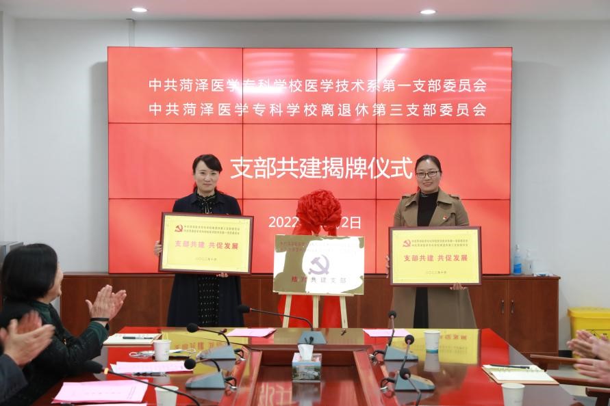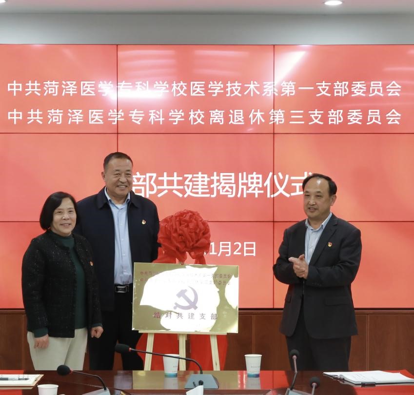 为促进基层党组织资源共享和优势互补,切实提升党建工作实效,筑牢基层党组织战斗堡垒,11月2日下午,医学技术系第一党支部与离退休第三党支部在第一会议室举行支部共建揭牌仪式。我校党委委员、副校长张传宝,医学技术系党总支书记牛家峰,离退休党委副书记董晓辉,组织部副部长邓凤英,医学技术系第一党支部书记牟翠荣,离退休第三党支部书记孙海燕及双方党员代表参加了会议。