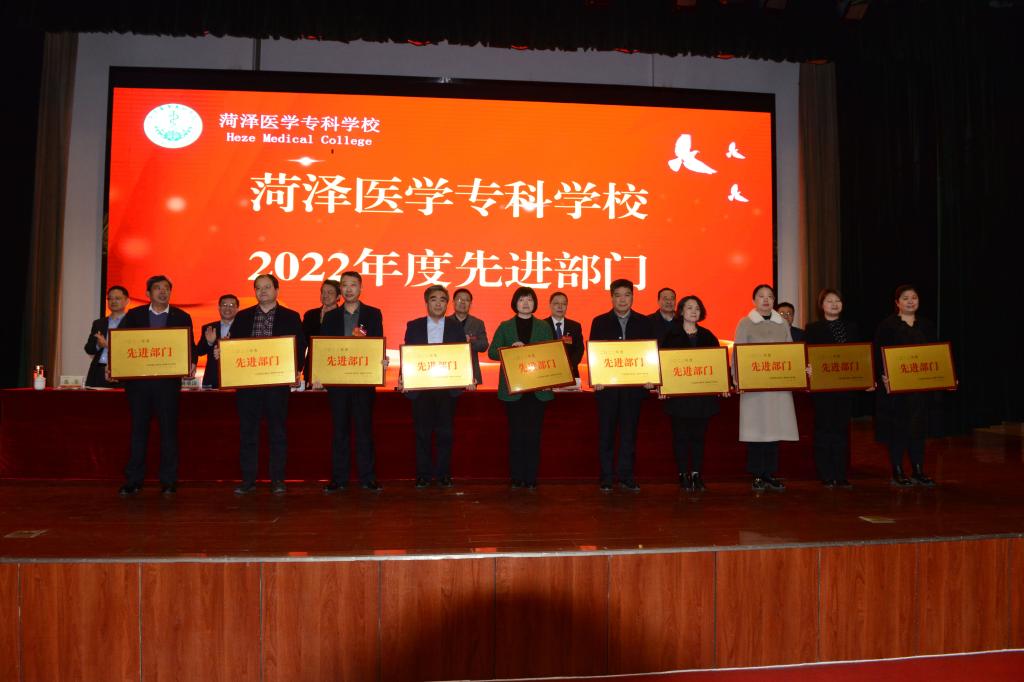 大会在庄严的《中华人民共和国国歌》声中拉开帷幕。党委委员、副校长齐云飞宣读《中共菏泽医专委员会关于公布党建特色品牌创建单位验收通过名单的通知》。大会对党建特色品牌创建单位党组织代表进行授牌。