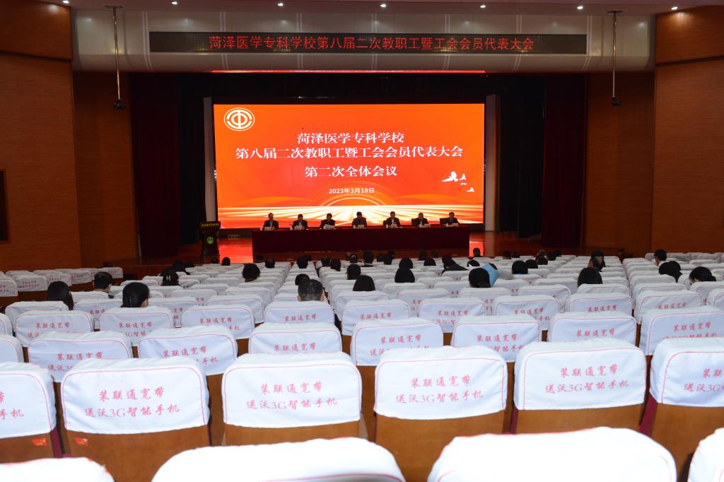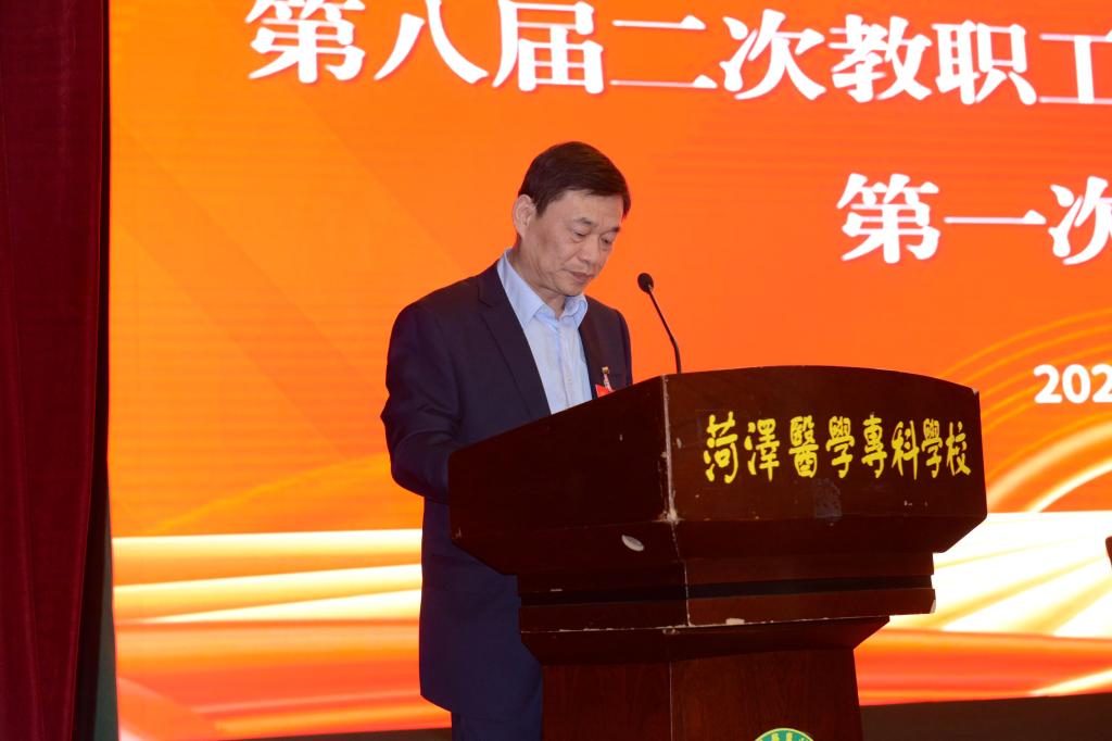 各代表团团长向大会主席团汇报讨论情况后,随即召开了第二次全体会议。会议通过了《菏泽医学专科学校第八届二次教职工暨工会会员代表大会决议》,党委委员、副校长刘心臣致闭幕词,他指出,本次大会全体代表积极履行职责,正确行使民主权力,围绕学校发展群策群力,建言献策,展现了良好的精神风貌和强烈的担当意识,希望各位代表要传达好、落实好“双代会”精神,在全校教职工中迅速掀起狠抓落实、只争朝夕的工作热潮。