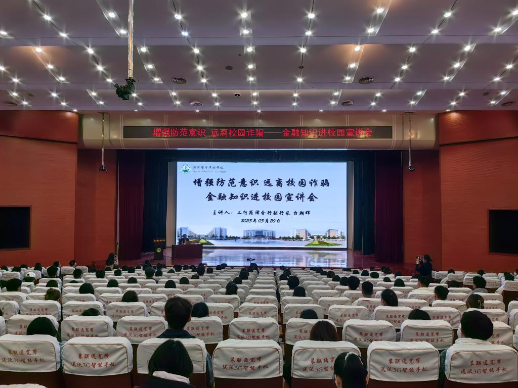 为全面提升大学生金融风险防范意识,增强辨别校园金融诈骗的能力,丰富大学生群体的金融知识,3月20日下午,由菏泽银保监分局、菏泽市银行业协会主办,菏泽医专团委、工商银行菏泽分行承办的“增强防范意识,远离校园诈骗”金融知识进校园宣讲会在学术报告厅成功举办。学校党委委员、副校长张传宝,菏泽市银行业协会秘书长廖军、工商银行菏泽分行副行长台朝晖,以及全校师生代表200余人参加了本次活动。宣讲会由校团委书记于淼主持。
