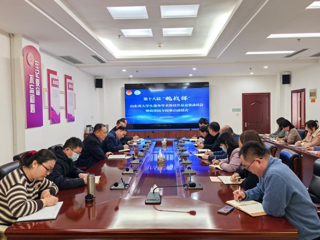 为深入学习贯彻党的二十大精神,进一步引导我校青年师生积极投身科技创新,营造求真务实、拼搏创新的校园学术氛围,3月22日上午,我校于图书楼第一会议室召开第十八届“挑战杯”山东省大学生课外学术科技作品竞赛动员会暨校赛启动仪式,会议由团委书记于淼主持。党委委员、副校长张传宝,学生处处长孙战,思政部主任姚树密,科研处处长马建伟,教务处副处长黄振江,各系党总支书记及团总支书记等相关人员参加会议。