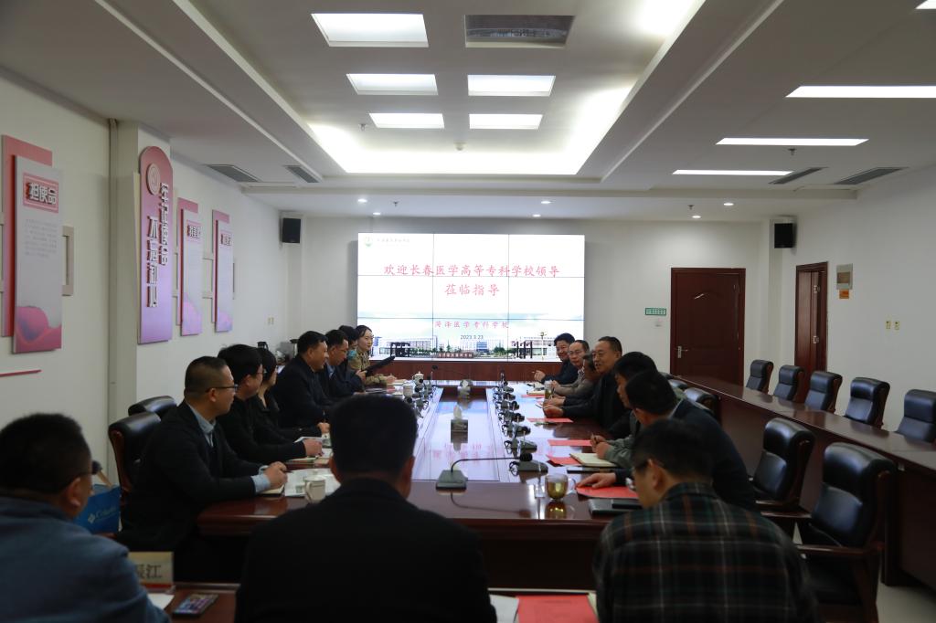 3月23日上午,长春医学高等专科学校党委委员、副校长李银山一行7人来我校考察交流。我校党委委员、副校长张传宝陪同考察并出席座谈会,相关部门负责人参加座谈。