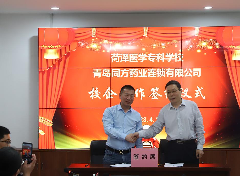 为贯彻落实党的二十大精神,切实推动2023届毕业生更加充分更高质量就业,4月20日下午,我校药学与检验系邀请青岛同方药业连锁有限公司等5家药学类企业在我校图书楼六楼第一会议室举行校企合作签约仪式。党委副书记、校长顾润国,党委委员、副校长张传宝,校企合作与培训就业处处长王学贺,药学与检验系党总支书记田文革、主任刘观昌,药学与检验系及校企合作与培训就业处相关工作人员参加了签约仪式。仪式由张传宝主持。