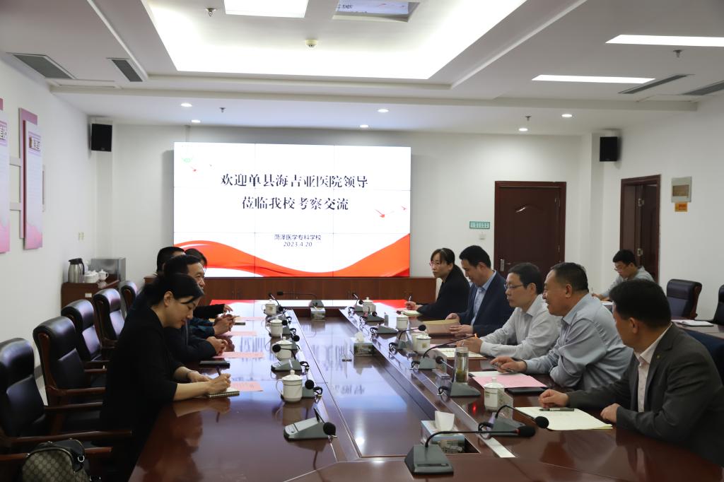 4月20日下午,单县海吉亚医院院长陈德厚一行4人来我校开展交流活动。党委副书记、校长顾润国,党委委员、副校长张传宝,校企合作与培训就业处全体人员参加座谈会。会议由张传宝主持。