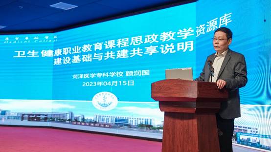 我校校长顾润国教授以“卫生职业院校课程思政高质量建设的思考”和“卫生健康职业教育课程思政教学资源库建设基础与共建共享”为题,从学校、教师、专业、课程、课堂及资源等六个层面分析了卫生职业院校课程思政高质量建设存在的问题和路径,并详细讲解了资源库目前的建设基础和将来的共建共享设计。