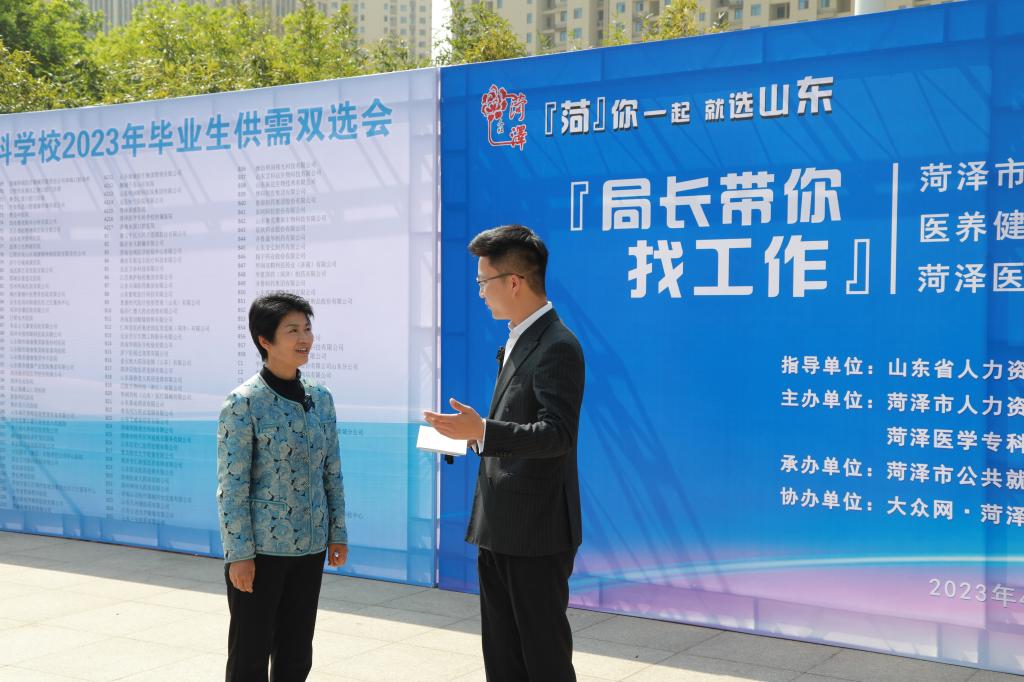 线下招聘,线上直播,校园双选会为企业、学生搭建多元化交流平台。菏泽市人力资源和社会保障局党组书记、局长梁惠民现场进行“局长带你找工作”线上直播送岗活动,以“菏创未来 乐业曹州”为主题,让公共就业服务进校园,助力高校毕业生就业创业。