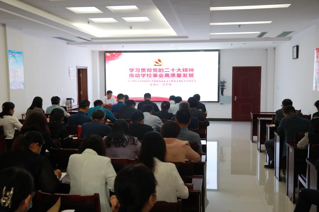 开学典礼结束后,袁志勇以《学习贯彻党的二十大精神,推进学校事业高质量发展》为题,为中层干部上了一堂精彩生动的专题党课。他从勇担使命,为事业育人才;不忘初心,为人民谋健康;以人为本,为发展聚动力;人心向学,营造育人氛围;立德树人,践行育人使命;真抓实干,推动事业高质量发展六个方面,深入解读了党的二十大报告提出的新观点、新论断、新思想,以及二十大对教育卫生健康事业提出的使命要求,并结合学校发展实际,对学校深入学习贯彻党的二十大精神提出了具体要求。一是坚持以党的二十大精神为指导,保持正确的政治方向;二是准确把握发展定位,承前启后砥砺前行;三是明确学校发展的目标和方向,在新形势下实现新作为;四是坚持科学的发展路径,以体制机制保证行稳致远;五是坚持党的全面领导,为高质量发展提供坚强保障。他希望,全校中层干部要把思想统一到习近平新时代中国特色社会主义思想和党的二十大精神上,汇聚到实现学校十四五规划确定的目标任务上,踔厉奋发、笃行不怠,办好人民满意的高等医学教育,为实现第二个百年奋斗目标、实现中华民族伟大复兴贡献菏泽医专力量。