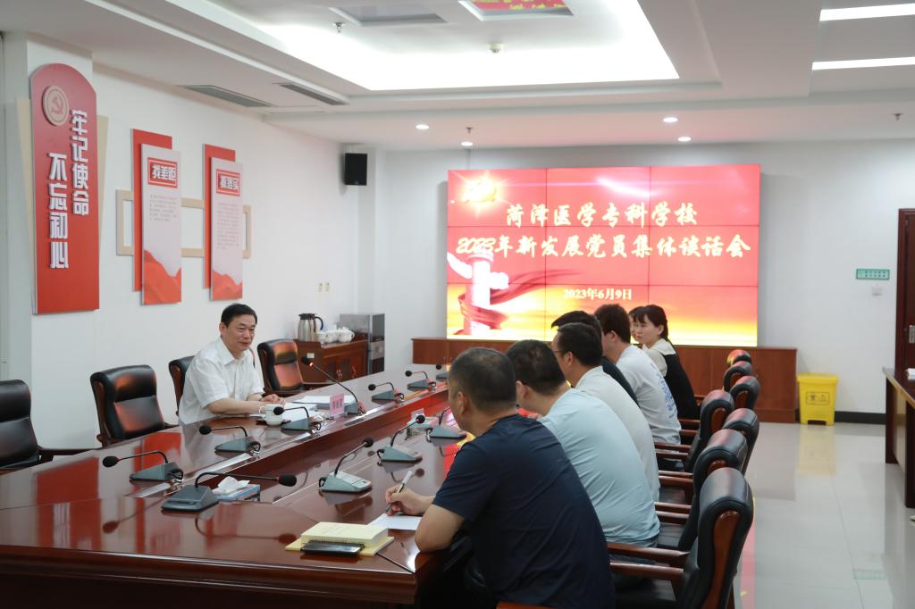 6月9日下午,党委副书记蒋继国同志在图书楼第一会议室与新发展教工党员进行集体谈话。会上,蒋继国深入了解10名新发展教工党员这段时间工作学习生活等方面的成长情况,每名教工党员就个人入党动机和思想动态作了汇报,并就如何在工作学习生活中发挥先锋模范作用谈了今后打算。