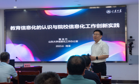 葛连升以“教育信息化的认识与院校信息化工作创新实践”为题,从教育信息化的认识、院校信息化工作创新实践、山东大学信息化发展探索实践等几个方面展开,对教育数字化发展及具体实践作了层层阐述。首先,葛连升指出要深化思想认识,准确理解把握信息化的内涵,把握数字化、智能化发展方向,厘清信息化发展思路与实现路径,深化对职业院校数字校园内涵的理解,围绕中心工作,持续推进教育信息化,推进职业院校治理体系和治理能力现代化。其次,葛连升以广东顺德职业技术学院、上海经济管理学校、青岛酒店管理技术职业学院等为案例,展示了其他优秀院校的信息化工作创新实践。最后,葛连升详细介绍了山东大学智慧校园建设的发展历程、现状及主要任务。葛连升在讲座中呈现的见解和实践令人信服,大家均表示收获颇丰、受益匪浅。