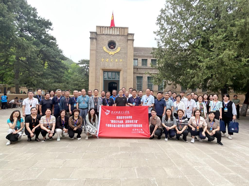 为深入开展学习贯彻习近平新时代中国特色社会主义思想主题教育,全面提高我校党政干部的综合素质和工作能力,7月3日,我校赴延安举办“赓续红色血脉、汲取奋进力量”干部综合能力提升暨主题教育专题培训班。7月4日,培训班在陕西延安干部学院地建基地顺利开班。学校党委班子成员、各二级部门党政负责人共49人参加了开班仪式。开班仪式由党委副书记、校长顾润国主持。