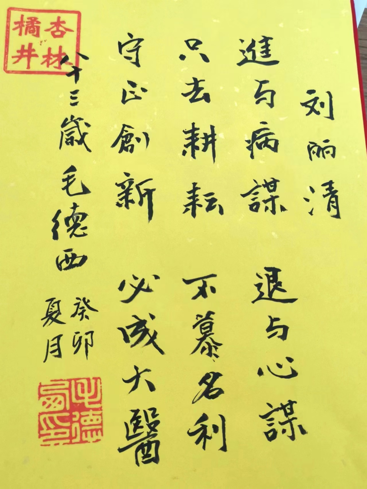 拜师仪式上,毛德西教授向弟子们颁发证书、赠书,嘱咐弟子们格物极源、读行并兼。仪式古朴庄重,意涵深远,特别值得一提的是,毛德西教授针对每一位弟子的专业特点,亲书训词,并当面谆谆训示,良苦用心可见一斑。对于刘丽清,毛德西这样写道:“进与病谋,退与心谋,只去耕耘,不慕名利,守正创新,必成大医”。刘丽清表示,进入师门后,一定要抓住这一难得的学习机遇,取到真经,学到精髓,为群众提供更高水平的中医药服务;提高专业知识,言传身教,尽自己最大力量为学校培养更多优秀中医学子。