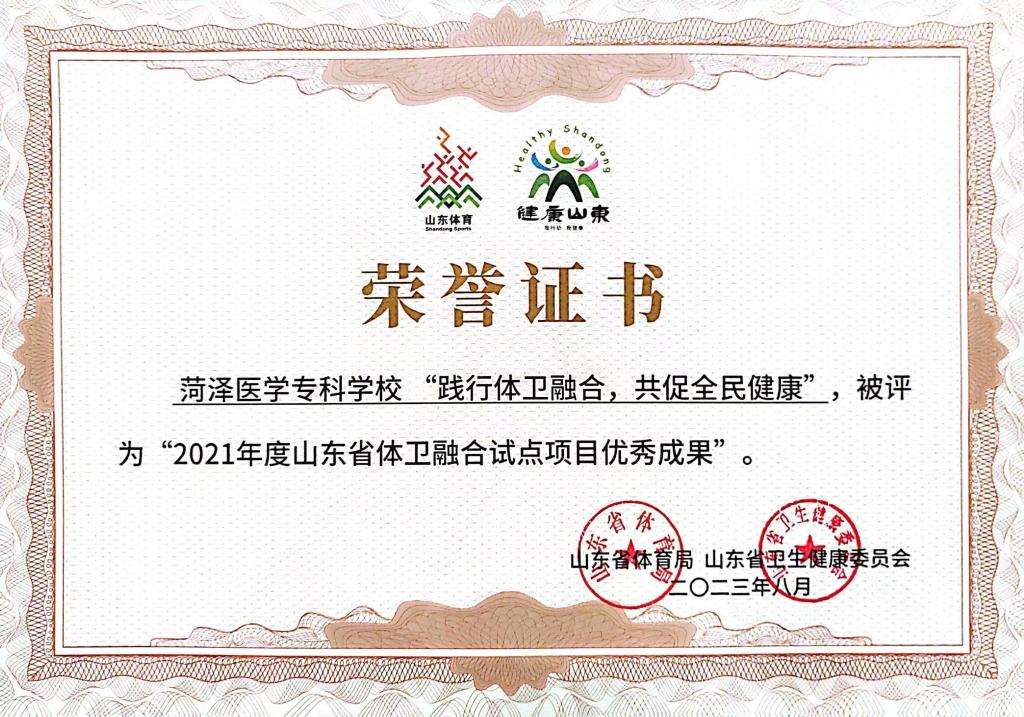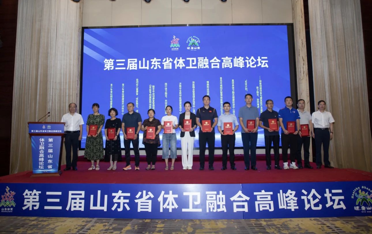 8月11日,首个“体育宣传周”期间,由山东省体育局和山东省卫生健康委联合主办的第三届山东省体卫融合高峰论坛在济南开幕,我校荣获“2021年度山东省体卫融合优秀试点项目”。