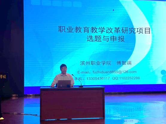 随后,原滨州职业学院教务处处长傅智端以“职业教育教学改革研究项目选题与申报”为题做首场讲座。他用渊博的知识、通俗易懂的语言、丰富的经验以及敏锐的判断力,深入浅出地讲述了职业教育改革教学改革研究项目的选题和申报,准确分析了职业教育改革的方向、重点和内容等,并对教学成果奖申报基础和要求做了详细介绍,最后结合案例阐述了教学成果奖的申报技术和技巧。
