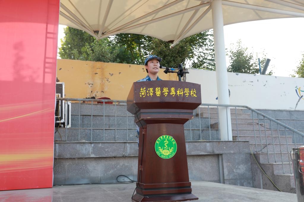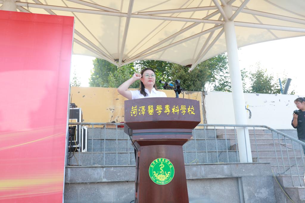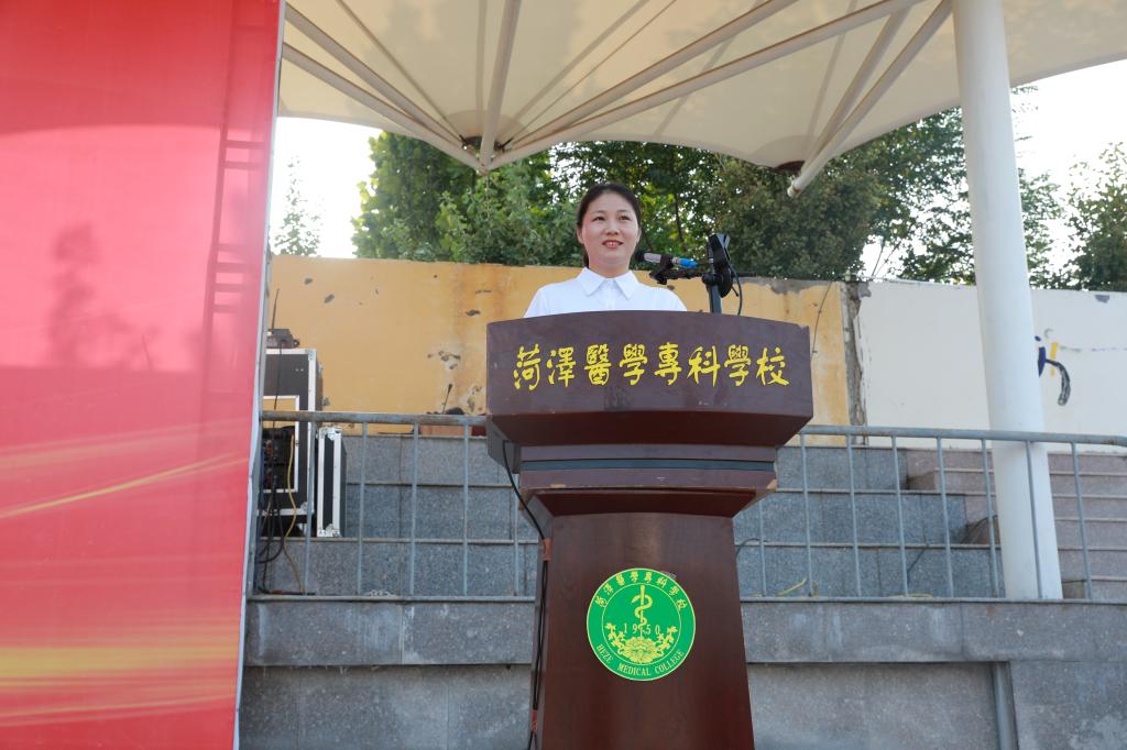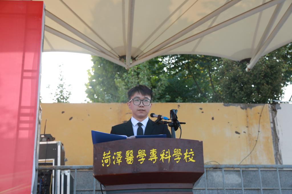 教师代表郭鹤寄语同学们要做一个有远大理想、道德高尚,勤学善思、真才实学,直面挑战、坚守初心的人。勉励大家紧握这三载春华,争做德智体美劳全面发展,勇于登攀的大学生,在拥抱青春的无限可能中书写属于自己的菏医故事。