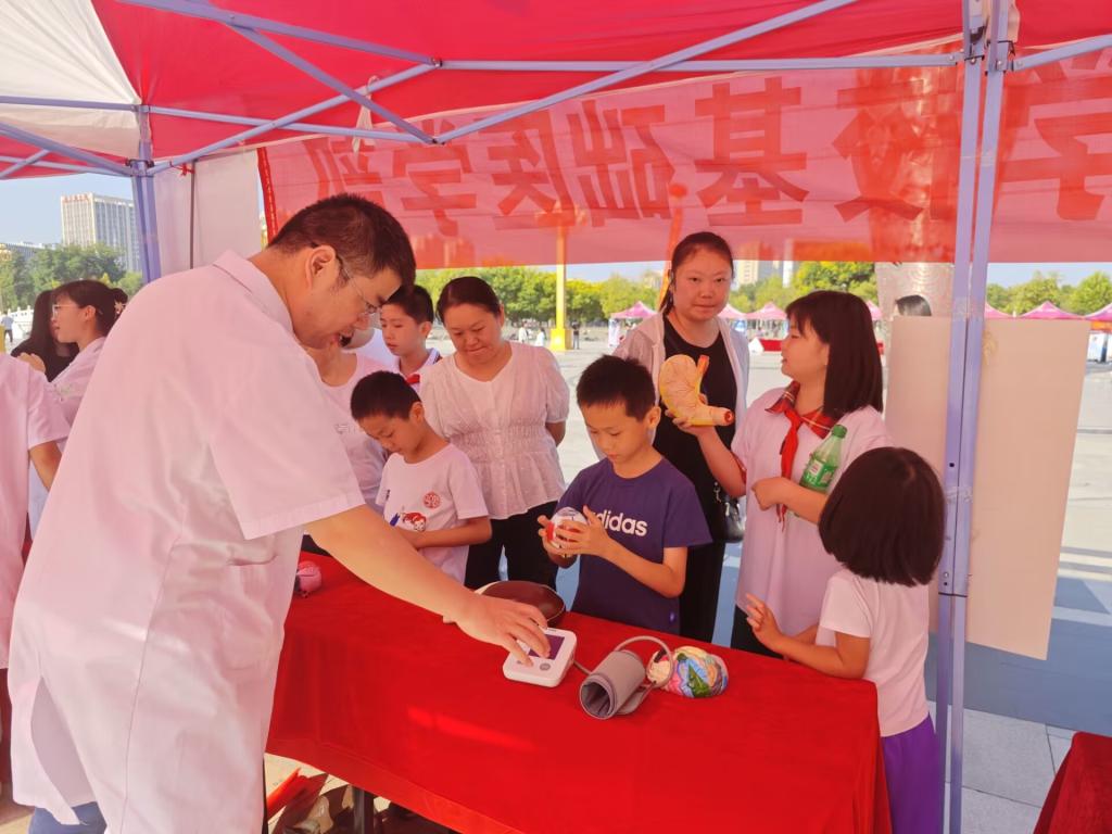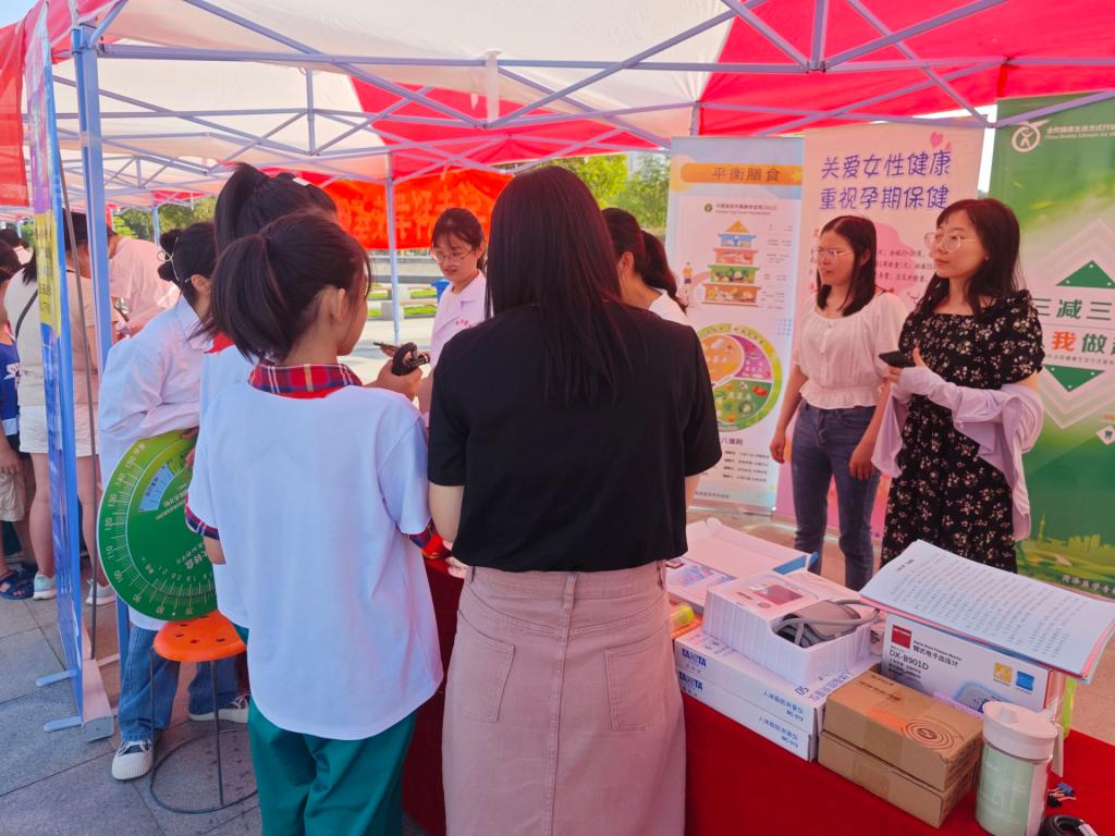 此次活动全市共有各科普教育基地、科普工作室、科普志愿服务队等300余人参加,其中我校4支科普团队23名师生参加此次活动。其中健康管理系科普队利用体脂秤、人体成分分析仪等仪器设备,向居民进行“三减三健”知识及平衡膳食知识科普,同时利用偏瘫老年人体验套装、老年人转移板等用物,面向老年人及其照护者开展了“预防跌倒,爱驻夕阳”健康服务活动,进行“防跌倒”健康知识科普。基础部生命科学科普工作室就正常人体结构进行讲解,提高公众对正常人体结构的了解,同时带领生命科学科普社社团成员测量血压,并普及有关高血压的防治措施,提高公众对于高血压疾病的重视程度。医学技术系科普队重点给小朋友们和家长发放“预防近视”宣传折页,为小朋友们讲解眼球的结构、近视的发生原理、近视的危害和预防措施,通过海报宣传老年人常见眼病的临床表现和预防,并现场解答群众关于眼病的疑问,给予专业的讲解和科学的就医指导。中医药系曹州本草中医药科普工作室进行中药现场展示,普及中医传统文化,提高公众对中医药的认识水平。活动获得广大群众的广泛关注,服务共计1000人次。