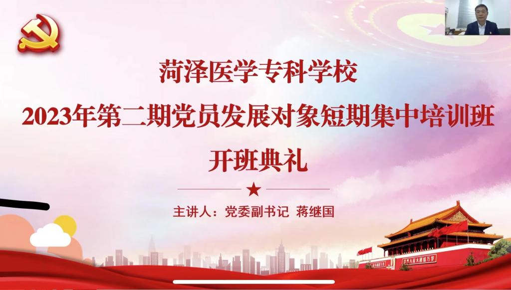 本次培训班共有129名党员发展对象参加,其中学校教工10名、附院医护人员9名、学生110名,培训采取线上培训与学员自主学习相结合的方式。线上培训阶段,安排开班典礼及《中国共产党章程》《中国共产党发展党员工作细则》《中国共产党支部工作条例(试行)》《关于新形势下党内政治生活的若干准则》等专题授课;自主学习阶段,精选中国共产党第二十次全国代表大会开幕会、《二十大精神二十人讲》《让党旗在新征程上高高飘扬》《焦裕禄生命的最后53天》《“三会一课”教学片》等多部弘扬主旋律、传播正能量的教学视频,为学员提供了丰富的课程资源。