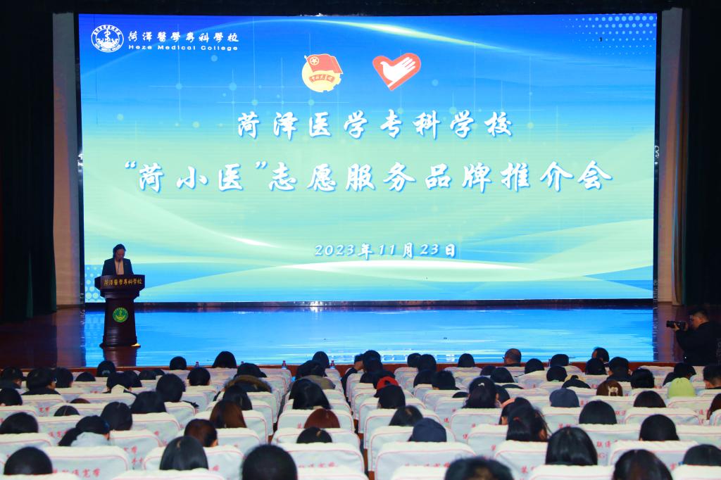 为推进高校志愿服务品牌化建设,我校面向全校师生和社会公众推广“菏小医”志愿服务品牌,打造具有医学学科特色、传递健康理念的特色志愿服务品牌。11月23日上午,“菏小医”志愿服务品牌推介会在我校大礼堂举行。牡丹区中医医院党委书记李志君,团市委青少年志愿者工作指导中心陈雨汐,校党委委员、副校长齐云飞,团委书记于淼,各系部党总支书记,志愿服务品牌项目负责人以及青年志愿者等230余人参加会议,会议由团委吴丹主持。
