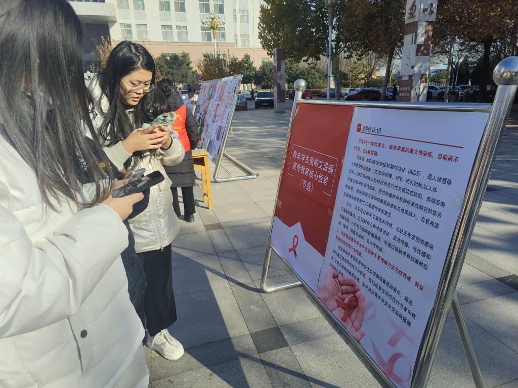 学生志愿者在石泉广场通过摆放宣传展板、悬挂宣传横幅、开展艾滋病防治主题知识竞赛等形式,向大学生普及艾滋病防治知识,进一步增强青年学生的自我保护意识和能力。截至活动结束,共有约2000人次参与到知识竞赛的答题中。