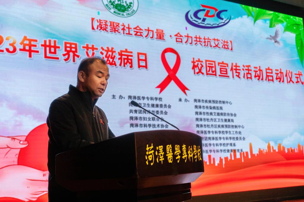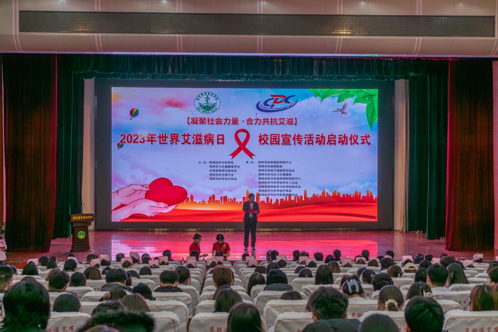 12月1日,在第36个“世界艾滋病日”到来之际,我校护理系、健康管理系联合菏泽市卫生健康委员会、菏泽市牡丹区人民政府、共青团菏泽市委、菏泽市妇女联合会、菏泽市科学技术协会、菏泽市疾病预防控制中心、菏泽市传染病医院、菏泽市性病艾滋病防治协会、牡丹区卫生健康局、牡丹区疾病预防控制中心举办的2023年“世界艾滋病日”校园宣传活动启动仪式在学术报告厅举行。