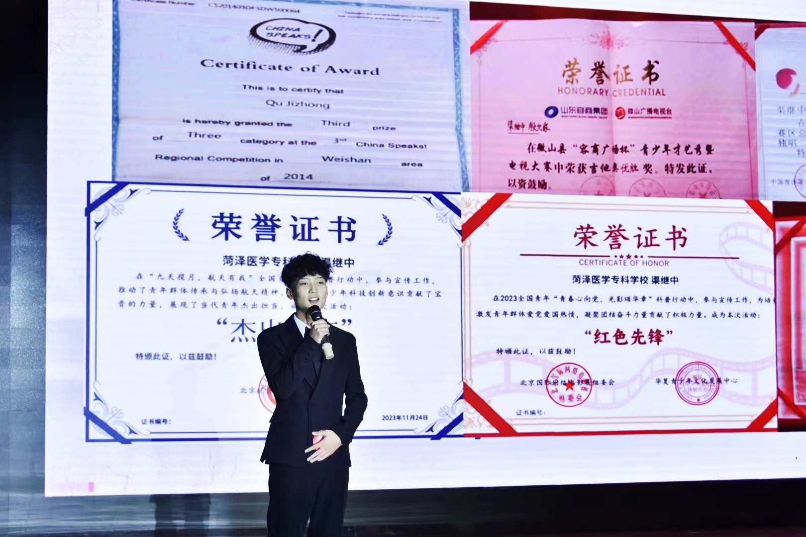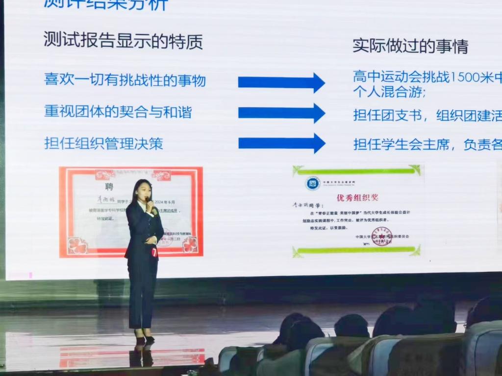 大赛自10月份启动以来,经过全方位、多角度的前期宣传,受到了全校师生的广泛关注。经各系初赛、中期选拔,最终有14名选手脱颖而出进入校决赛。决赛现场每位参赛选手各显风采、斗志昂扬,紧扣大赛主题,结合自身专业技能优势、成长经历、未来规划等方面进行展示。现场精彩纷呈,高潮迭起,选手们声情并茂的讲述,引发了学生们强烈共鸣,赢得阵阵掌声。经过激烈角逐,成长赛道和就业赛道各评出一等奖1名、二等奖2名、三等奖4名。最后,与会领导为获奖选手颁奖,祝贺选手们取得优异比赛成绩。