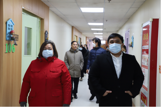 当天下午,我校科研处处长马建伟陪同安达曼校长一行参观学校附院养护中心。安达曼校长详细了解了养护中心运营情况及特色亮点,对养护中心现代化的设施、整洁的居住环境、标准化的服务给予了高度评价,希望双方能够在养老服务领域加强合作。(科研处赵宏玉/文 马建伟/审核)