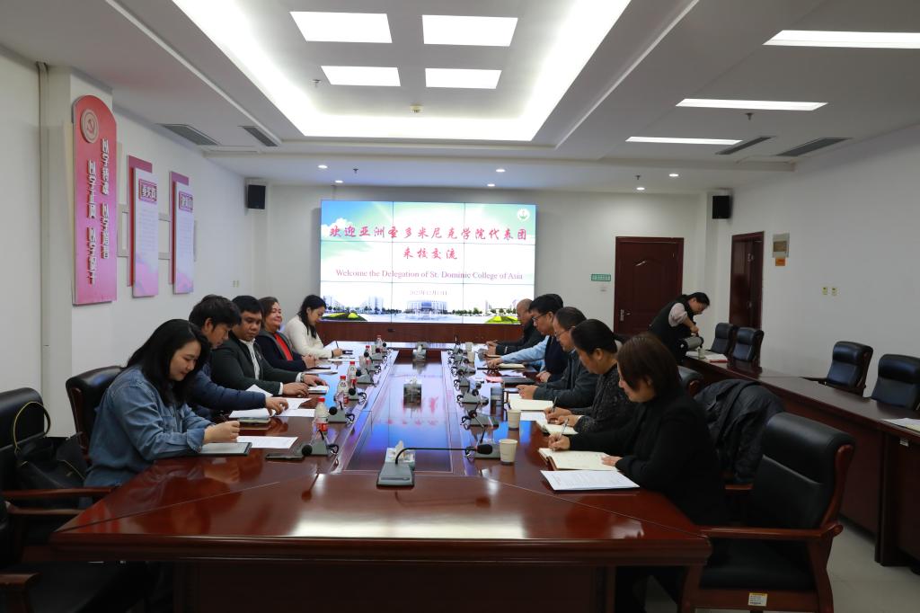安达曼校长对学校的热情接待表示感谢,同时介绍了亚洲圣多米尼克学院发展历程、学科优势以及专业特色。随后双方就两校之间开展师生互访、学术交流、联合科研、人才培养等合作进行沟通交流,并达成初步共识,签署合作谅解备忘录。