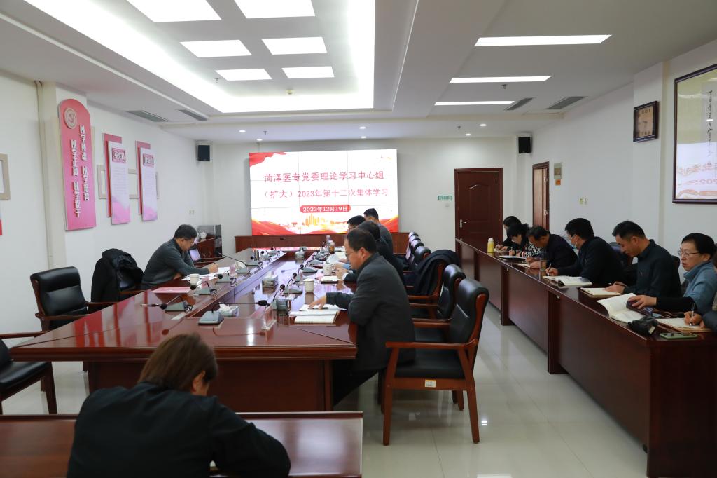 12月19日上午,我校在第一会议室举行党委理论学习中心组(扩大)2023年第12次集体学习,学校党委班子成员及二级部门党政负责人参加学习,党委书记袁志勇主持会议。省卫生健康委宣传处处长吴黎明列席会议。