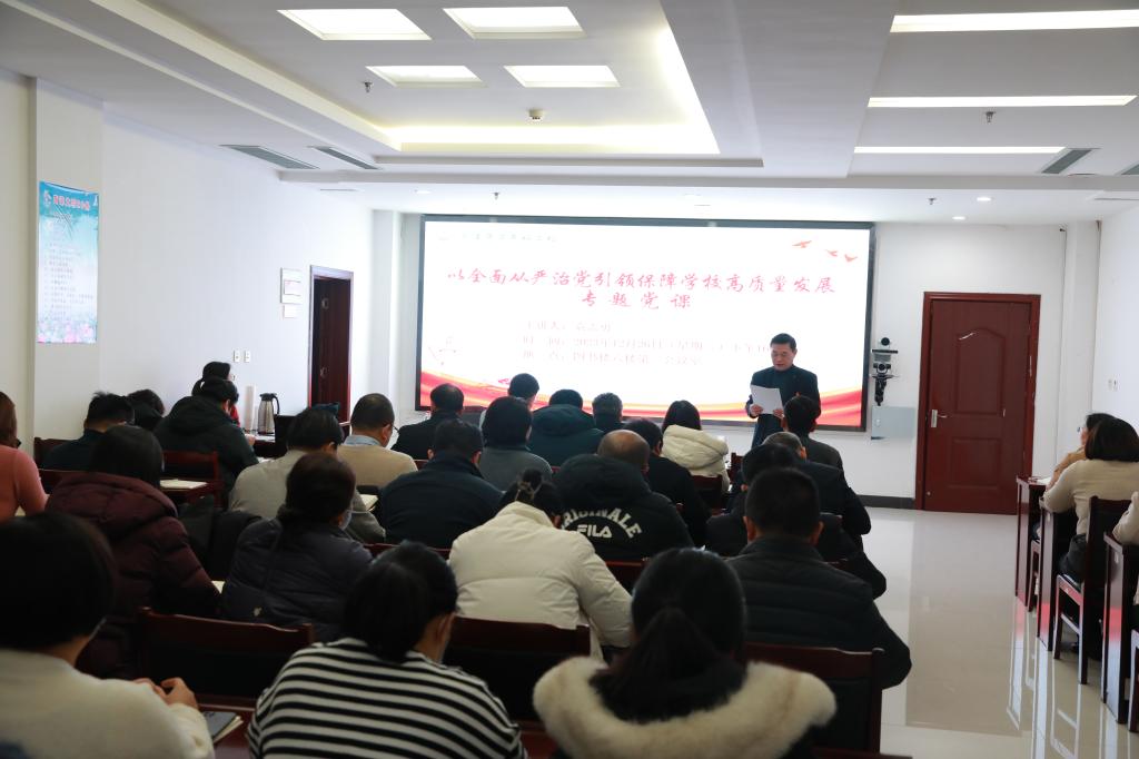 为深入贯彻党的二十大精神,坚定不移推动全面从严治党向纵深发展,12月26日下午,我校党委书记袁志勇在第三会议室讲授“以全面从严治党引领保障学校高质量发展”专题党课。党委副书记、党校校长蒋继国主持,学校各二级部门党政负责人、各党支部书记参加学习。