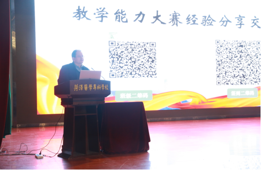 郭鹤分别从“参赛感悟”、“参赛文字材料的撰写”、“参赛视频的录制”和“参赛的特色亮点”等四个方面为教师们进行了深入浅出的讲解,传递了宝贵的教学经验以及实用的备赛方法,内容夯实、过程生动、效果显著,特别是为参加2024年教学能力比赛的教学团队提供了很好的指导与借鉴。