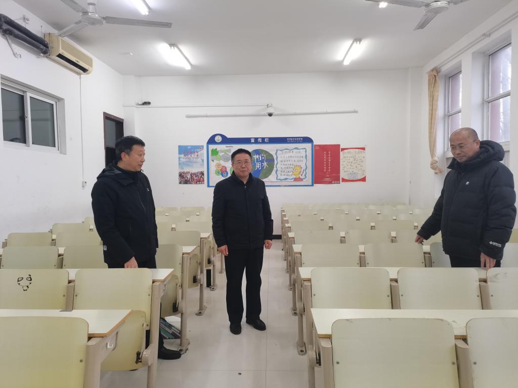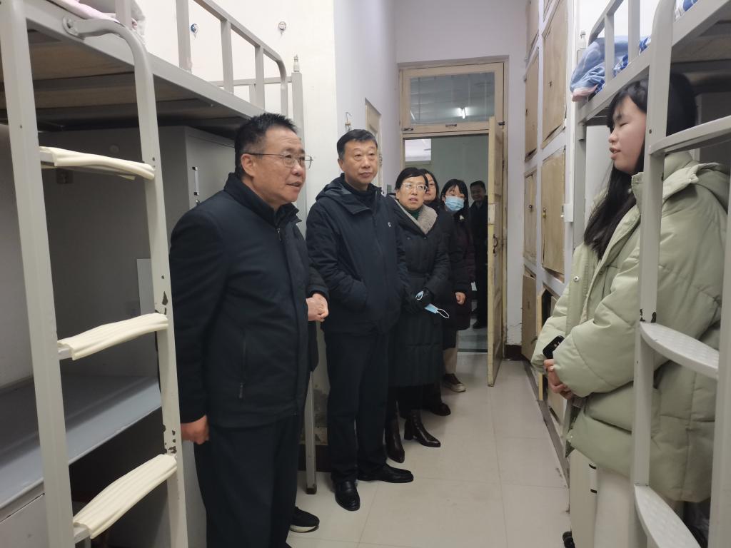 为确保寒假期间校园安全,杜绝学生离校后的安全隐患,1月19日下午,校党委委员、副校长齐云飞带队开展教室、宿舍安全卫生专项检查,学生处处长孙战、各学生系部党总支书记陪同检查。