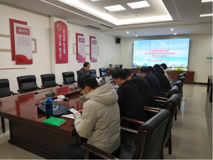我校2024年单独招生和综合评价招生报名人数再创新高。为保障招生考试顺利进行,更好服务考生和家长,2月28日上午,我校在图书楼六楼第一会议室召开2024年单独招生和综合评价招生考试协调会。学校党委委员、副校长郭树榜主持会议并讲话,办公室、宣传部、教务处、安保处、现代教育技术中心、学生处、总务处、附属医院等部门负责人参加会议。