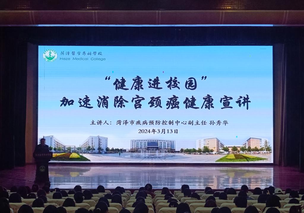 为深入贯彻新时代卫生与健康工作方针,落实《“健康中国2030”规划纲要》和《中国妇女发展纲要(2021-2030年)》,积极响应世界卫生组织提出的“加速消除宫颈癌全球战略”,提高广大师生对宫颈癌知识的了解,加快宫颈癌消除进程。3月13日,我校在学术报告厅举办“健康进校园—加速消除宫颈癌”健康科普宣讲,邀请到菏泽市疾病预防控制中心副主任孙秀华担任主讲人,校党委委员、副校长齐云飞,团委书记于淼和部分师生代表共400余人参加活动。