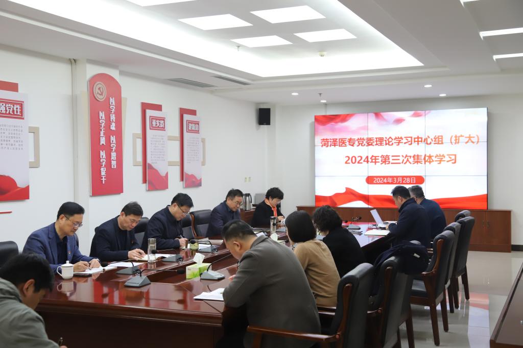 3月28日上午,我校在图书楼第一会议室举行党委理论学习中心组(扩大)2024年第3次集体学习。学校党委班子成员及二级部门党政负责人参加学习,党委书记袁志勇主持会议。