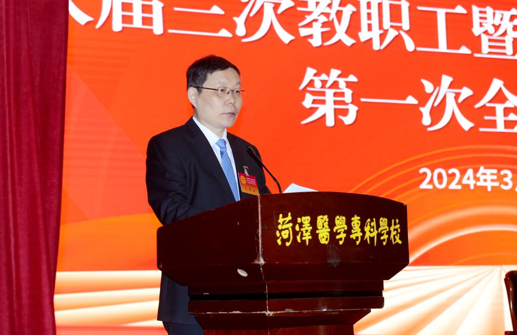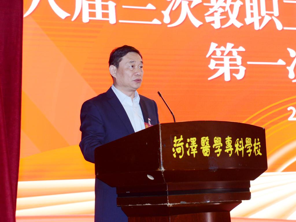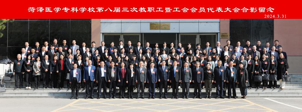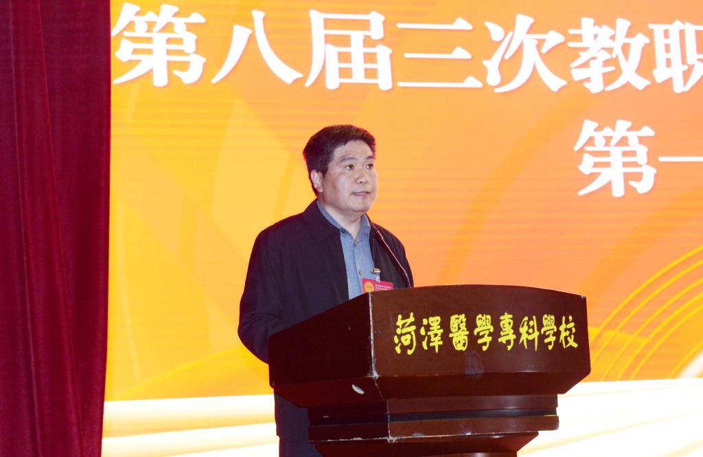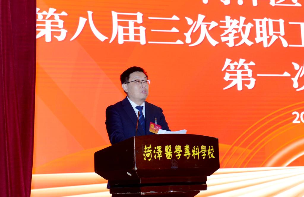 各代表团团长向大会主席团汇报讨论情况后,随即召开了第二次全体会议。会议通过了《菏泽医学专科学校第八届三次教职工暨工会会员代表大会决议》,党委副书记、工会主席蒋继国致闭幕词,他指出本次大会全体代表以高度的责任感和强烈的使命感,积极履行代表职责,正确行使民主权力,围绕学校发展群策群力,建言献策,展现了良好的精神风貌和强烈的担当意识,是一次团结的大会,胜利的大会!希望各位代表要传达好、落实好“双代会”精神,在全校教职工中迅速掀起狠抓落实、只争朝夕的工作热潮。