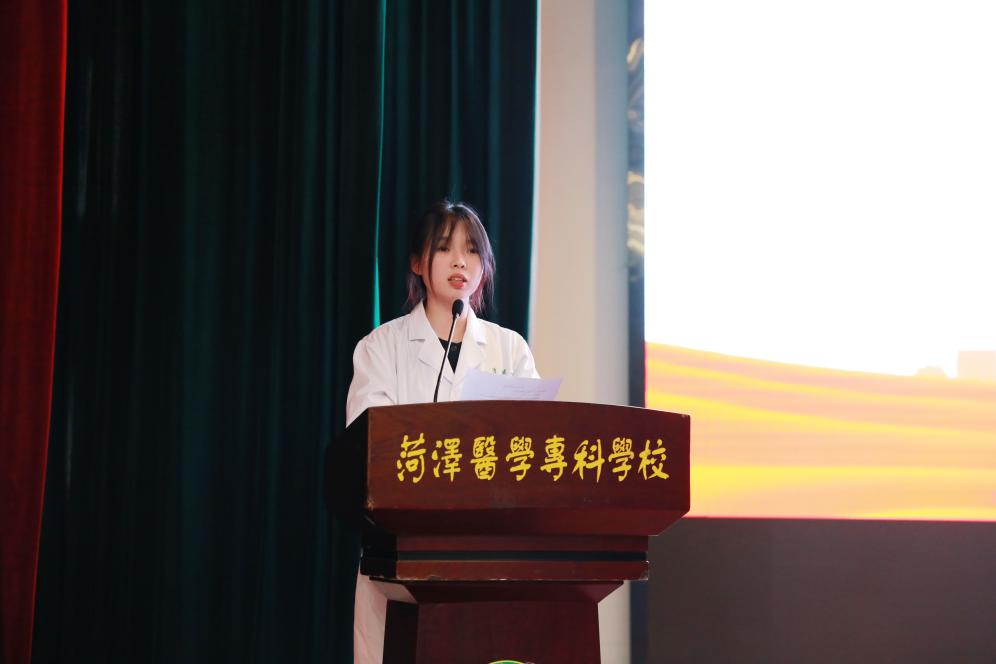 2022级药学2班赵珍珍同学代表店长班学员发言,她表示将会带领店长班学员以企业导师为榜样,专心学习、勤于思考、珍惜机会、严格自律,争取早日成才。